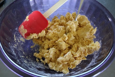 4. In a large bowl stir together the Cake mix, Egg, and Butter mixture with a fork. Make sure all the dry Cake Mix is incorporated as you see here.