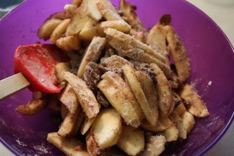 3. In a large bowl combine the Apples, Flour, Sugar, Raisins, Cinnamon, Nutmeg, and Cloves. Stir to coat all the Apples and Raisins.