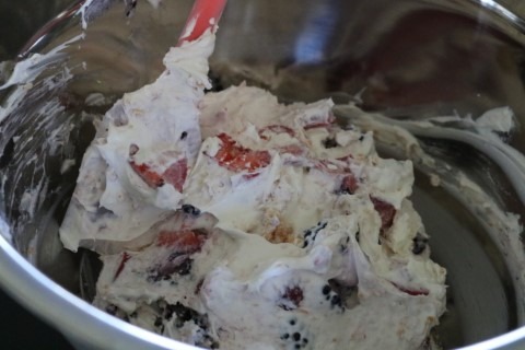 4. Fold in the Berries very gently, then fold in the Toasted Coconut.