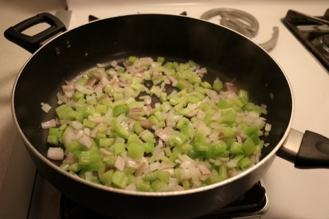 1. In a large skillet, add the Oil, Onions and Celery. Saute on medium heat until the Vegetables are tender. Transfer the Vegetables into a 6 or 7 quart slow cooker.