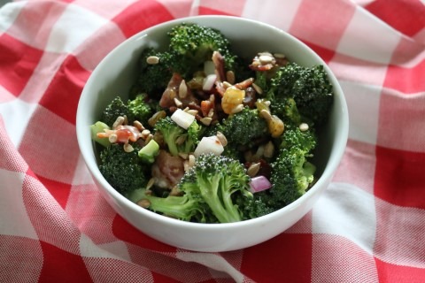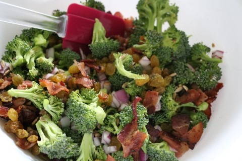4. After the Broccoli Salad has been in the refrigerator for one hour, take it out and give it a good stir and you are ready to serve. Store any leftovers in the refrigerator.