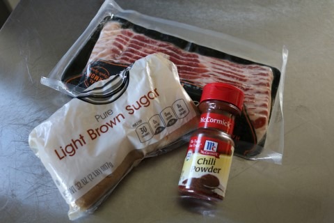 3. In a shallow baking dish (select a dish close to the length of the Bacon), stir together the Brown Sugar and Chili Powder with a fork until well combined.