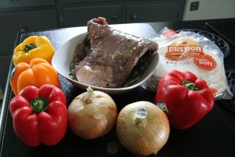 I marinate the Flank Steak for this recipe, the night prior. Then about mid morning I slice the Peppers and Onions and refrigerate them in a covered container. Next I make the Jalapeno Lime Dressing and put it in a mason jar and refrigerate it until dinner time, so the flavors can marry.