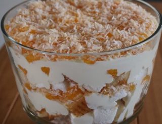 A Trifle with light Angel Food cake bites, Mandarin Oranges and Toasted Coconut. This Dessert is easy to make. It has a creamy Orange flavor, and Toasted Coconut tops this dessert off. If you don’t have a Trifle bowl you…