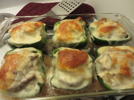 Steak filled Peppers topped with Cheese. This is a dish with great flavor combinations reminiscent of a Philly Cheese Steak. Golden Onions and Mushrooms pair so well with the Steak and Peppers, then a nice melted Cheese to top it…