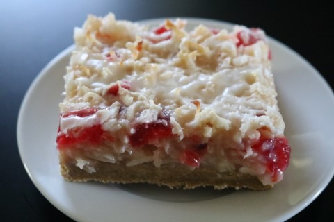 This is a decadent, rich Dessert. The flavors of Cherries and Coconut in a creamy filling. The buttery Graham Cracker Crust is a delicious base for the filling.