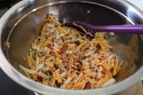 4. Add the Cheese and Cilantro (if using) to the Chicken mixture. Stir well to make sure everything is combined.