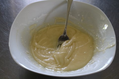 13. In a medium size bowl, add the melted Butter, 1 Teaspoon Almond Extract and stir well with a fork.