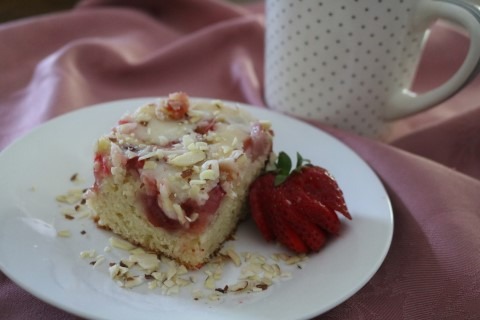 Who doesn’t love a good old fashioned Coffee Cake? With the addition of fresh Strawberries, this Cake is super moist and delicious without being overly sweet. Although this one I made from scratch, it is easy to prepare and it has a nice presentation. Serve it with your favorite coffee blend for dessert or even at brunch.