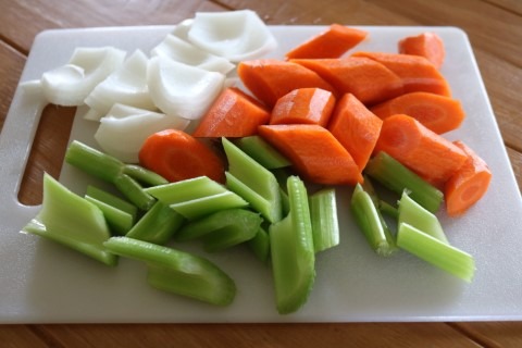 3. Add in the chopped Vegetables and Bay Leaves next.