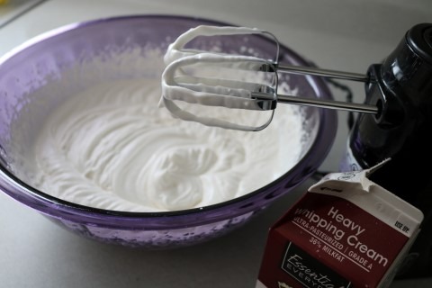 1. Place a medium size glass mixing bowl and beaters into the freezer for 10 minutes.