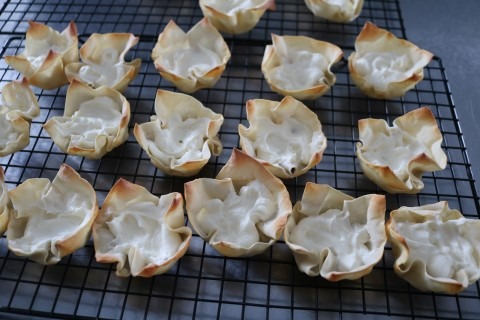 5. Bake the Wonton Wrappers in the preheated oven for 6-8 minutes. They should be a light golden brown color when done. Transfer them to a cooling rack and cool completely.