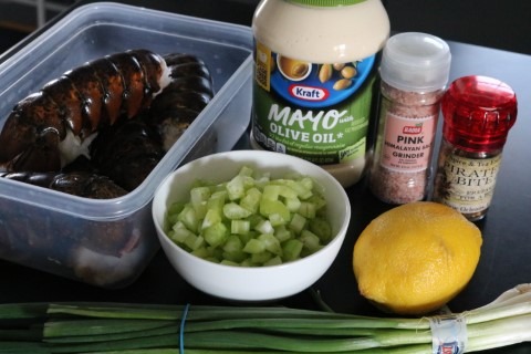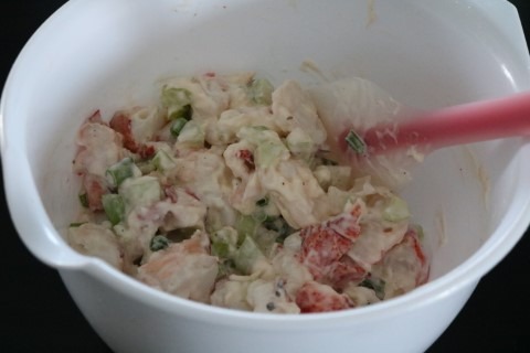 4. Add the Celery, Green Onion and Lobster Meat into the same bowl. Fold everything together ensuring the Dressing coats all the ingredients.