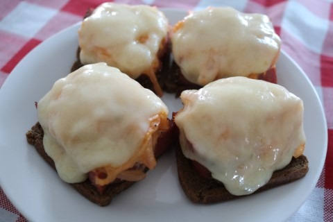8. Place two Pieces of the Swiss Cheese on top of the Sauerkraut mixture on each sandwich.