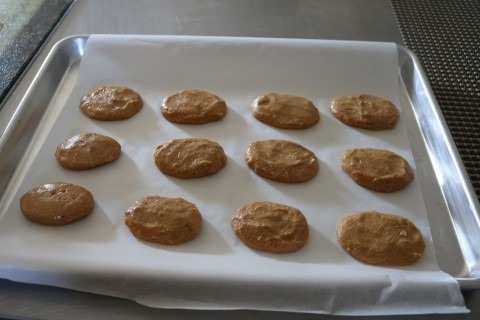 7. After 15 minutes remove the Filling from the freezer. Take a portion of the dough about the size of a golf ball and form it into a flat egg shape. Continue with the remaining Filling. You should be able to make a dozen Egg shapes.