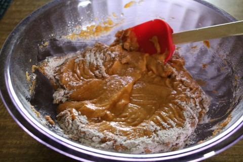 2. Stir the Flour, Salt, Baking Powder, Baking Soda, Nutmeg, Ginger, Cinnamon and Cloves together with a fork in a medium size bowl.