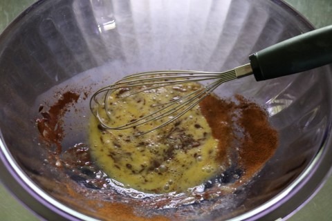 2. In a large mixing bowl whisk together the Eggs, Nutmeg, Cloves and 1 Teaspoon Cinnamon.