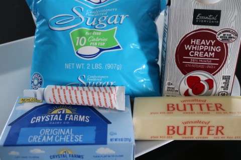6. To make the Frosting: In a large mixing bowl, add the Cream Cheese, and Butter. Using a handheld mixer, cream them together until smooth. Next add in the Orange Food Coloring and blend together. Slowly start adding the Powdered Sugar and alternate with the Heavy Cream keeping the mixer speed on low. Once the Powdered Sugar is combined, increase the speed to medium high and continue to mix until the Frosting is smooth.
