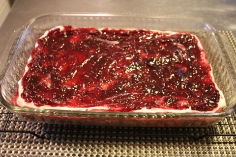 7. Next spread the Raspberry Pastry filling on top of the Cream Cheese layer.