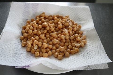 2. Rinse and drain the Chickpeas in a small colander. Transfer the drained Chickpeas to paper towels to dry them off.