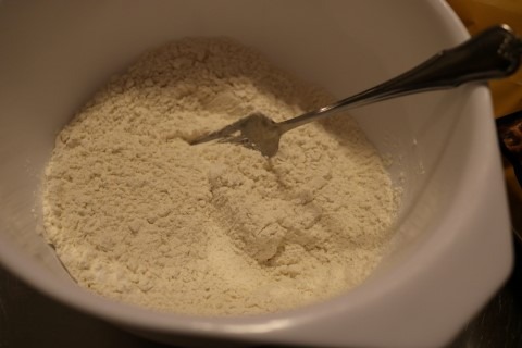 2. In a medium size bowl, stir together the Flour, Baking Soda and Salt with a fork. Set aside.