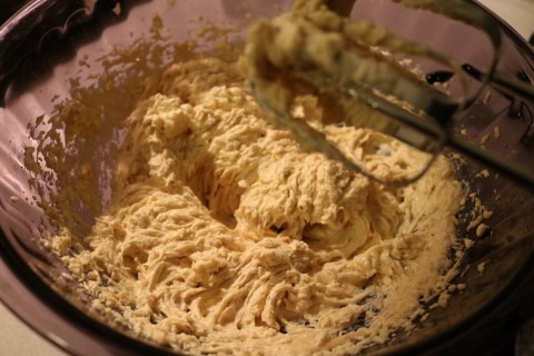 5. Slowly add the Flour mixture into the Butter mixture. Put about 1 cup in at a time to mix, otherwise you will have Flour all over your kitchen.