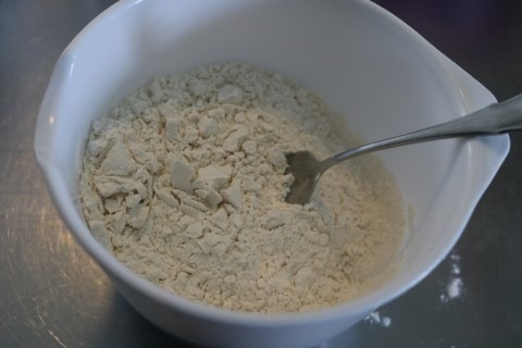 4. In a medium size bowl, stir together the Flour and Baking Soda with a fork and set aside.
