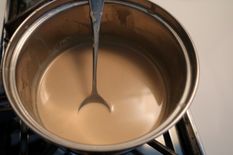 6. Now mix in a half cup of the infused Half and Half, reserving 1/4 cup for our glaze.
