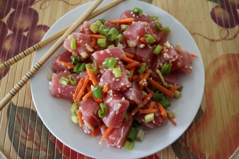 Since this recipe calls for raw Tuna, I have one tip that you should follow prior to preparing this recipe. Always freeze any raw fish prior to preparing, if you are eating it raw. This will kill any parasites. If you purchase it already frozen, then you just need to thaw and rinse the fish.
