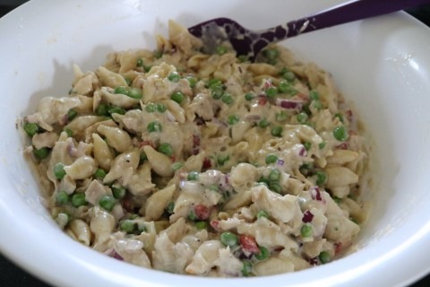 5. Reserve about 1 Cup of the Dressing in a separate container. Add the drained Pasta and the remaining Dressing to the bowl with the Tuna and Veggies. Gently fold everything together, ensuring everything is coated with the Dressing. Cover and refrigerate the Pasta for at least an hour to allow the flavors to marry and the the Pasta to chill. Stir once again just prior to serving. The Pasta often soaks up some of the Dressing so this is why I reserve a cup of the Dressing so it can be added just prior to serving if you feel you need more Dressing. If your Pasta seems just fine after refrigerating it, save the Dressing for any leftovers you may have. Sometimes the next day it is nice to add it in, to ensure your leftover Tuna Pasta Salad is nice and creamy.