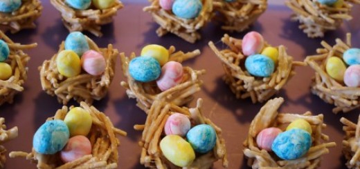 Adorable and edible Candy Easter Egg Nests. These are so cute for a Buffet Table or at each place setting for your Easter Dinner Guests. These are pretty easy to make but you do need to start a day ahead…