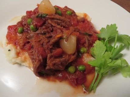 Beef Merlot Over Sour Cream Mashed Potatoes