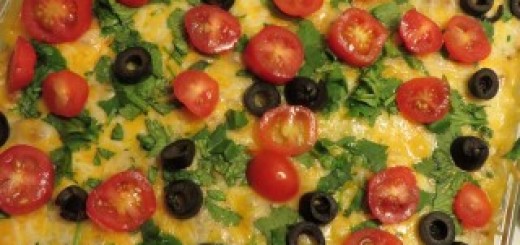 A colorful Casserole with cheesy, bold taco flavors. This Hot Dish is a lot easier to serve and less messy than Tacos. If you grow Tomatoes, Cilantro, Red Peppers and Jalapeno Peppers in your garden, like I do, this is a great Hot Dish…