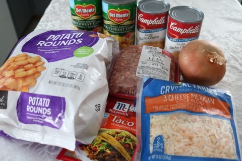 • 1 (32 oz.) Bag Tater Tots (you will only use aprox. 1/2 of the bag)