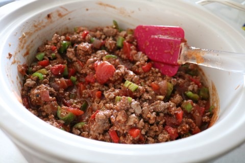 3. Add the Ground Beef to the same pan and brown the Beef, drain any fat, then transfer to the slow cooker.
