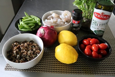 5. Remove the Wild Rice Salad from the refrigerator and fold in the Shrimp and you are ready to serve.